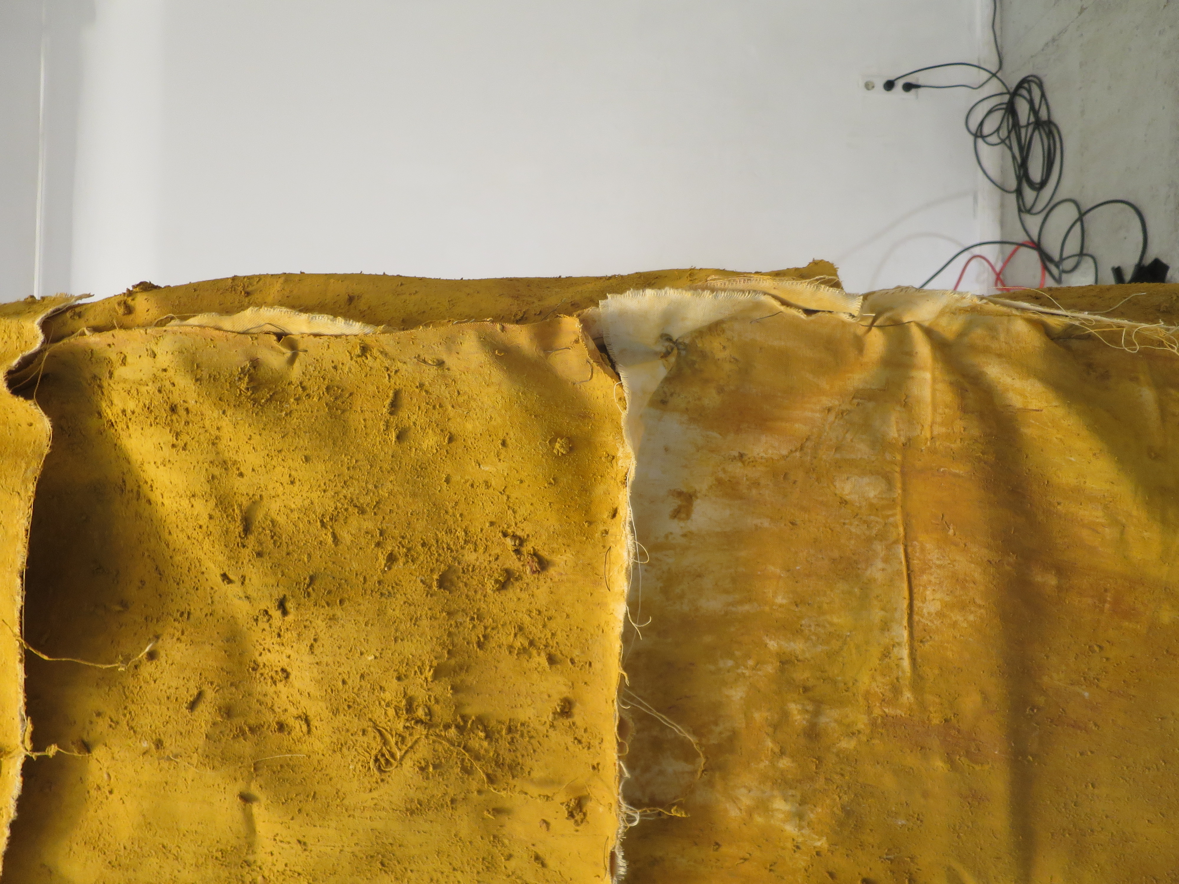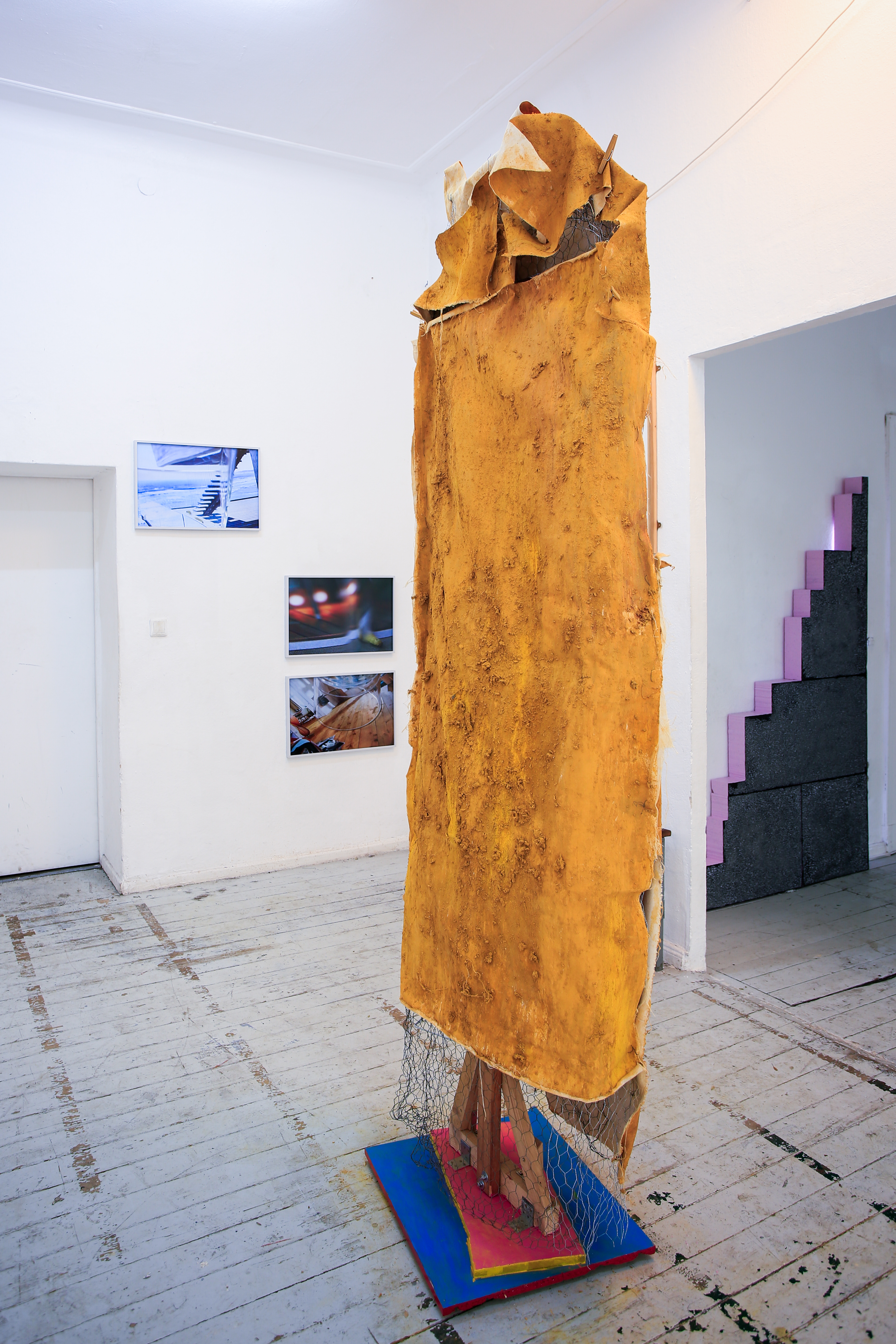 wood, canvas, pigmet, wire, latex, acrylic paint; 250 x 74 x 26 cm.